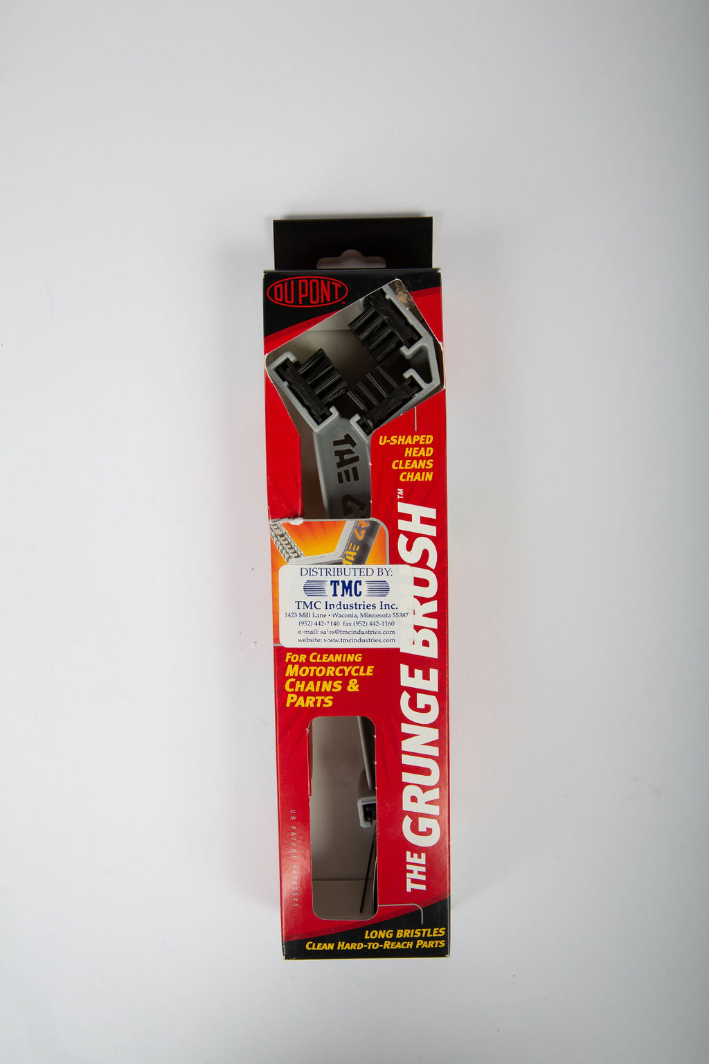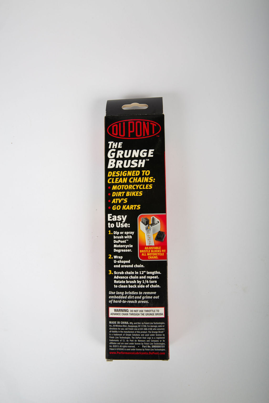 Die Grunge Brush ist das Kettenreinigungswerkzeug, auf das Sie gewartet haben! Diese Bürste hat zwei Bürstenköpfe mit starken Borsten, um Schmutz, Fett und Ablagerungen von Ihrer Kette, Ihren Kettenrädern und sogar Ihrem Zylinder zu entfernen. Mit dem dreiseitigen Bürstenkopf können Sie die Vorder-, Ober-/Unter- und Rückseite Ihrer Kette gleichzeitig reinigen; und die Borsten am Ende sind dünn genug, um zwischen Kassette und Kurbelzahnräder zu gelangen. Egal, ob Sie Ihre Fahrradkette, Kassettenzahnräder, die Kette Ihres motorisierten Fahrrads oder das hintere Antriebszahnrad reinigen, mit der Grunge Brush fahren Sie im Handumdrehen wie ein Champion!