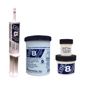 LOX-8-Produkte – silikonfreie PCTFE/PTFE-Dichtstoffe und -Fette für den Einsatz in Bereichen, in denen Sauerstoff oder aggressive Chemikalien wie Chlor oder starke Oxidationsmittel vorhanden sind.