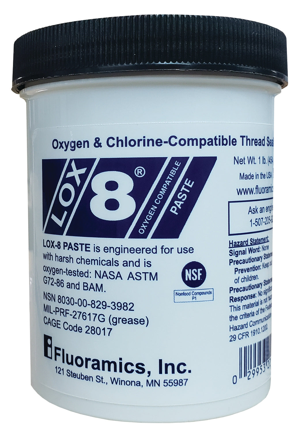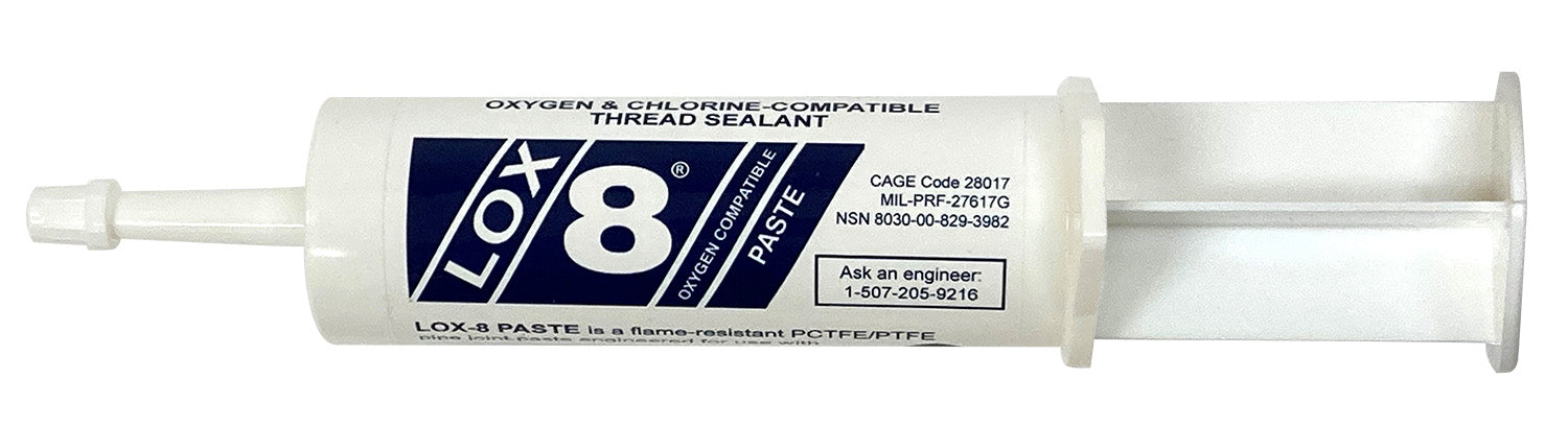 LOX-8 Paste und LOX-8 Grease sind für den Einsatz in gasförmigem und flüssigem Sauerstoff zertifiziert. LOX-8 bietet hervorragende Leistung als Schmier- und Dichtungsmittel und ist von -400 °F bis +550 °F stabil.