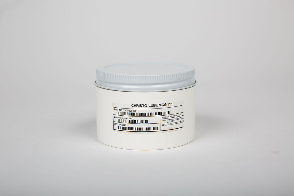 Christo-Lube® MCG 111 is a fully fluorinated grease thickened with PTFE which operates under extreme temperature conditions, has outstanding stability with oxygen and excellent compatibility with metals, plastics and elastomers. This medium consistency fluorinated lubricant is especially useful in lubricating valve and regulator components where nonreactivity with harsh chemicals, fuels and solvents is an important factor. CHRISTO-LUBE® MCG 111 is qualified to MILPRF-27617G Types I, II & III and is also registered with NSF as an H-1 lubricant meaning it is acceptable for use in or around food processing equipment.