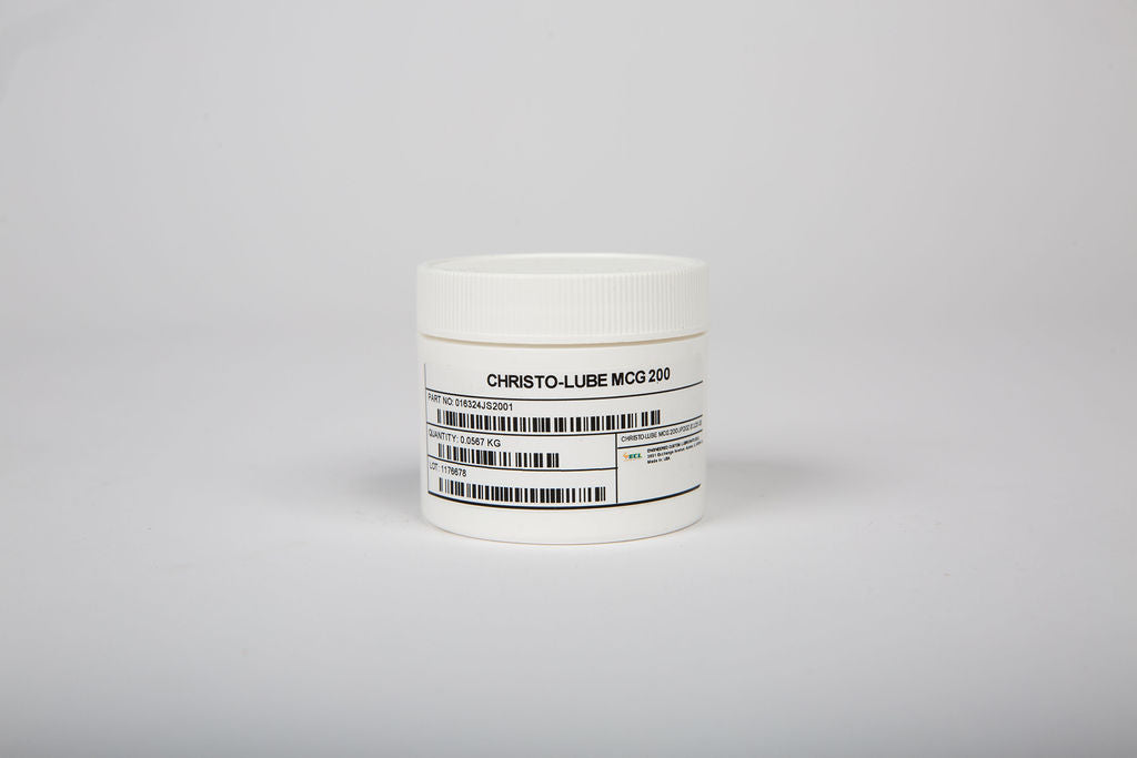 CHRISTO-LUBE® MCG 200 is a fluorinated polysiloxane grease thickened with PTFE which operates under extreme temperature conditions. This non-migrating fluorosilicone lubricant is clean room compatible and is especially useful in lubricating various types of bearing, gears and rails found in semiconductor manufacturing environments.