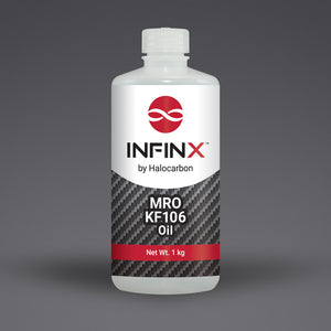 InfinX MRO KF106 is a premium lubricating oil designed for use in extreme conditions at high temperatures. Formulated using Halocarbon PFPE Technology, this universal oil is safe for use across a broad range of applications. InfinX MRO KF106 is chemically inert and nonflammable and provides superior lubrication across a mid-range of temperatures (–40 °C to +260 °C).