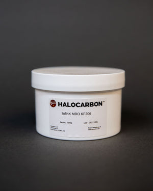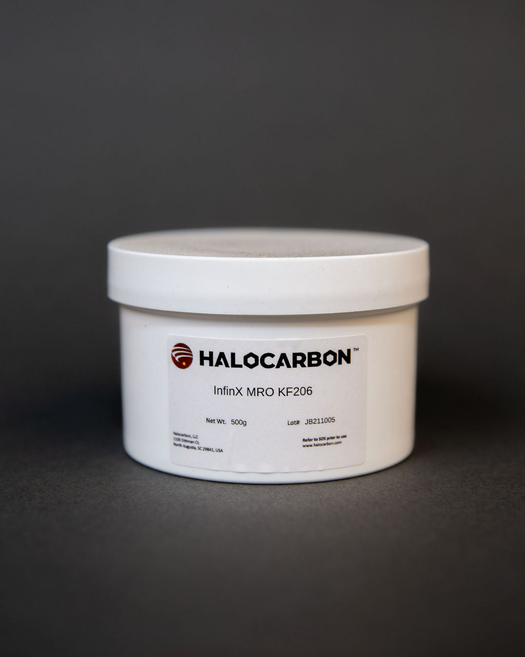 InfinX MRO KF206 is a premium lubricating grease designed for use in extreme conditions at high temperatures. Formulated using Halocarbon PFPE Technology and thickened with a PTFE-based thickener, this universal grease is safe for use across a broad range of applications. InfinX MRO KF206 is chemically inert and nonflammable and provides superior lubrication across a mid-range of temperatures (–40 °C to +260 °C).
