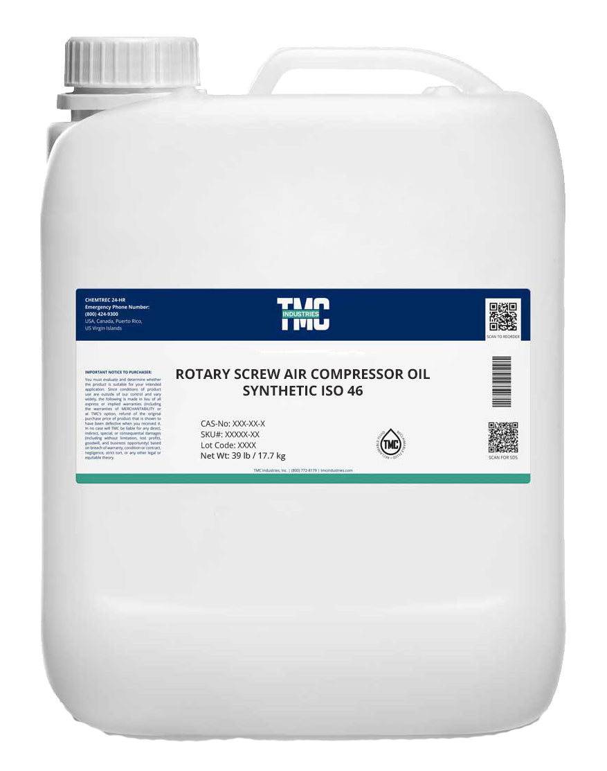 TMC's ISO 46 Oil is a long-life, premium compressor lubricant based on novel, proprietary technology. It incorporates the highest quality, thermally stable synthetics fortified with premium non-detergent additives for maximum protection at high temperatures. It lasts up to 8,000 hours, effectively reducing maintenance and waste oil disposal costs.